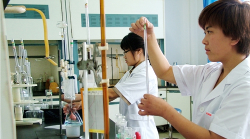 集團(tuán)化驗(yàn)人員正對(duì)尿素氮含量指標(biāo)進(jìn)行分析檢測(cè)
