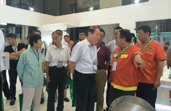 集團(tuán)公司董事長(zhǎng)張金成(左三)、副總經(jīng)理王富興(右一)參加展會(huì)