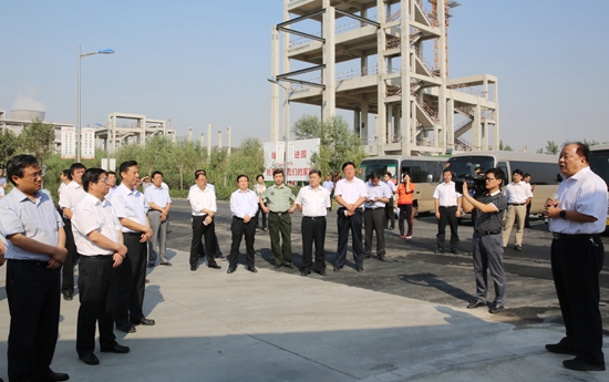 圖為 觀摩團領(lǐng)導一行來到魯西集團退城進園項目工地實地觀摩
