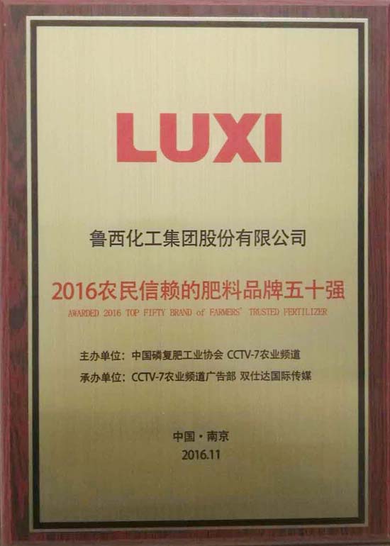 11月5日,由中國磷復(fù)肥工業(yè)協(xié)會聯(lián)合CCTV-7農(nóng)業(yè)頻道隆重策劃的“盛世風(fēng)云·沃土之夜——2016農(nóng)民信賴的肥料品牌五十強(qiáng)”頒獎(jiǎng)晚會在南京舉行。魯西化工集團(tuán)股份有限公司以其過硬的產(chǎn)品質(zhì)量、良好的市場知名度、較強(qiáng)的品牌影響力,榮獲“2016農(nóng)民信賴的肥料品牌五十強(qiáng)”榮譽(yù)稱號。魯西集團(tuán)化肥事業(yè)部副部長王新昌代表集團(tuán)領(lǐng)獎(jiǎng)。