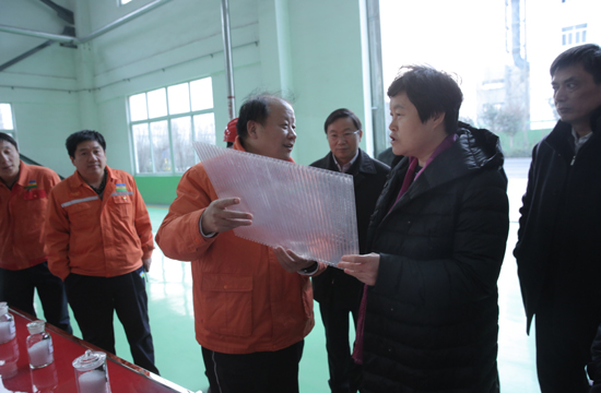 在聚碳酸酯裝置現(xiàn)場,看到由聚碳酸酯為原料制作的陽光板、耐力板時,李主任仔細詢問了該產(chǎn)品的產(chǎn)能、生產(chǎn)規(guī)模、產(chǎn)品性能、生產(chǎn)成本以及下游市場情況。當了解到該產(chǎn)品的部分工藝指標趕上甚至超過了歐美發(fā)達國家的標準時,李主任強調(diào):一定要在產(chǎn)品的關(guān)鍵技術(shù)上實現(xiàn)突破,為國內(nèi)聚碳酸酯行業(yè)的發(fā)展起到帶頭和引領(lǐng)的作用。