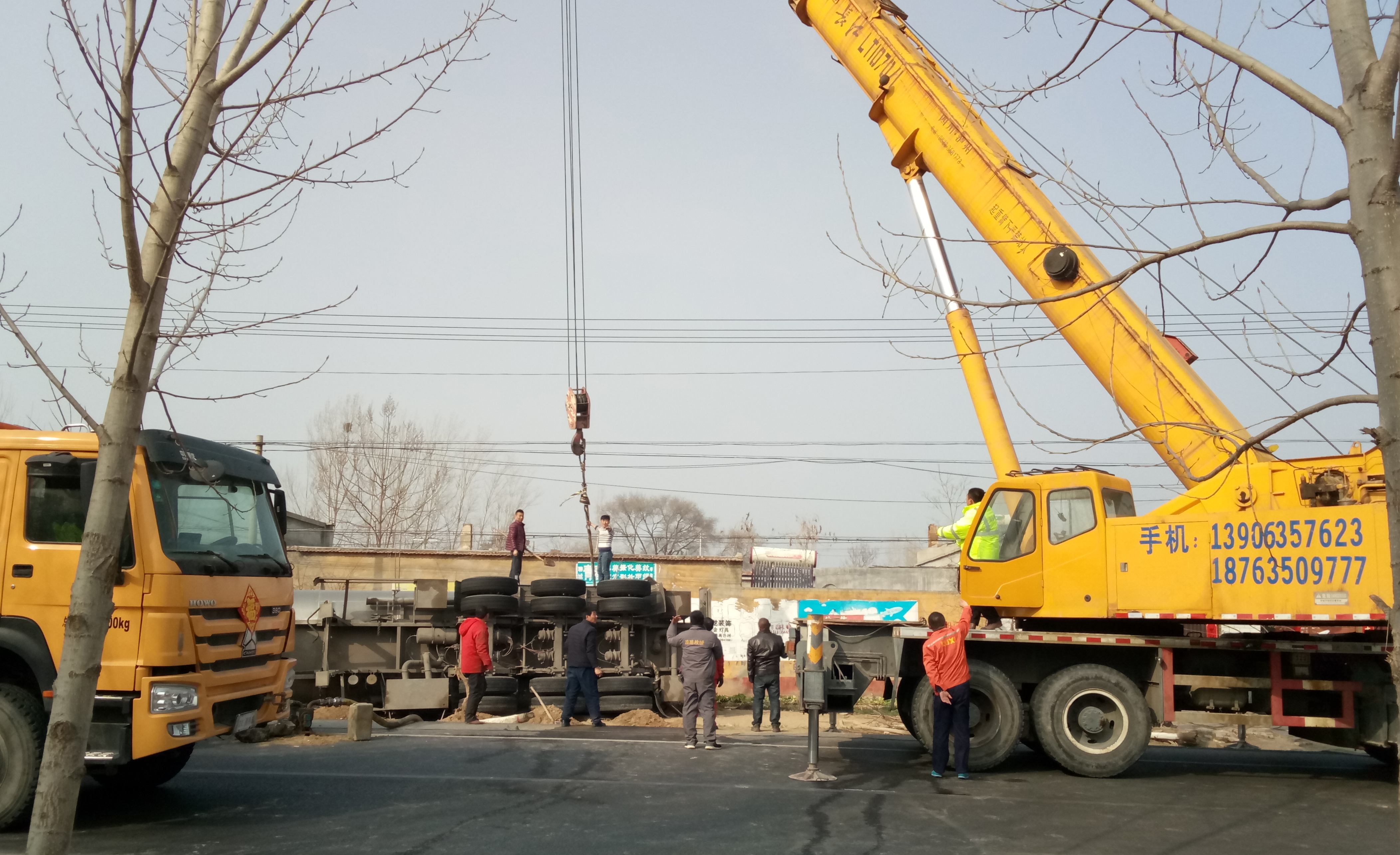 到達現場后,經與莘縣消防隊對現場情況進行分析,制定了“消除靜電、安全倒罐、吊正罐車、牽引脫離”的救援方案,并安全處置險情,順利完成救援任務。