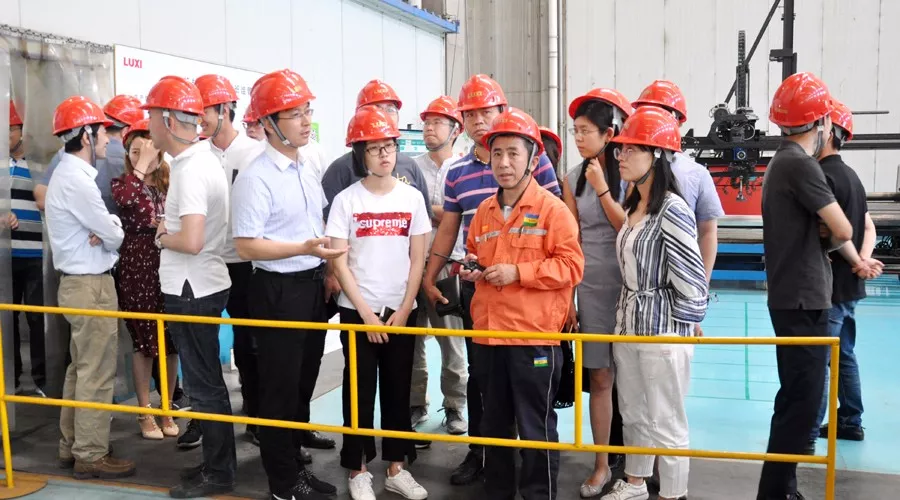圖為參會股東和投資者代表參觀重型裝備廠房。