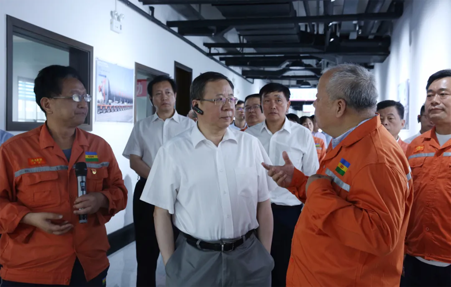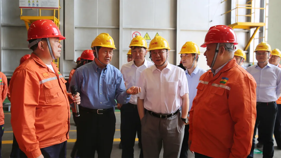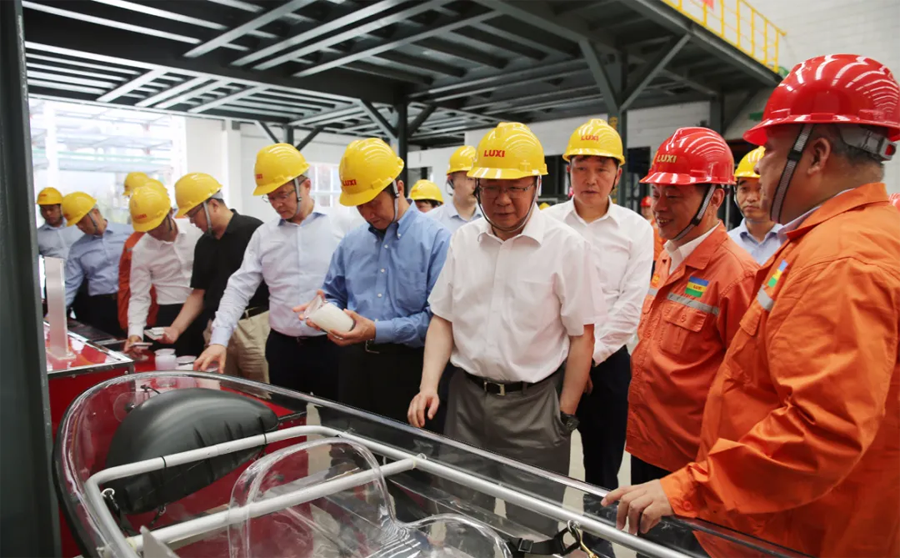 領(lǐng)導(dǎo)一行先后參觀了園區(qū)重型裝備、應(yīng)急救援中心、尼龍6和聚碳酸酯包裝現(xiàn)場(chǎng)、廢水零排放、氣化爐、固廢處置現(xiàn)場(chǎng)、技術(shù)中心大樓和展廳。領(lǐng)導(dǎo)一行進(jìn)車(chē)間、看現(xiàn)場(chǎng)、聽(tīng)介紹,和員工攀談?,F(xiàn)場(chǎng)了解了化工工程裝備的強(qiáng)大制造能力,吸收再創(chuàng)新能力和先進(jìn)的自動(dòng)化水平;觀看了魯西應(yīng)急消防設(shè)施配備和應(yīng)急隊(duì)員綜合科目訓(xùn)練展示;了解了尼龍6和聚碳酸酯的產(chǎn)能、技術(shù)水平、下游產(chǎn)品和市場(chǎng)前景,以及氣化爐的核心技術(shù)優(yōu)勢(shì);聽(tīng)取了關(guān)于園區(qū)零排放目標(biāo)實(shí)施,建設(shè)綠色化工園區(qū)、智慧化工平臺(tái)建設(shè)和較高資質(zhì)設(shè)計(jì)能力的匯報(bào);并且通過(guò)參觀展廳,細(xì)致了解了集團(tuán)的發(fā)展歷程、目前的發(fā)展?fàn)顩r和未來(lái)的發(fā)展規(guī)劃。