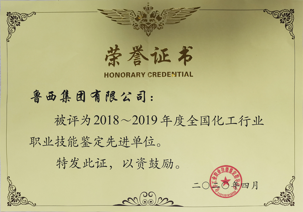 近日,化學(xué)工業(yè)職業(yè)技能鑒定指導(dǎo)中心發(fā)布了《關(guān)于表彰2018-2019年度全國化工行業(yè)職業(yè)技能鑒定先進(jìn)單位、優(yōu)秀工作者的決定》(化職鑒[2020]9號),魯西集團(tuán)有限公司獲得“2018-2019年度全國化工行業(yè)職業(yè)技能鑒定先進(jìn)單位”榮譽稱號。