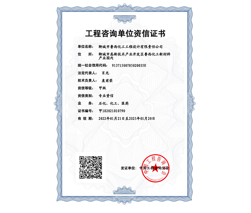 近日,中國工程咨詢協(xié)會發(fā)布《中國工程咨詢協(xié)會公告2022年第1號》,魯西集團(tuán)設(shè)計(jì)院原石化、化工、醫(yī)藥專業(yè)乙級咨詢資質(zhì)順利通過甲級資信評價(jià),成功升甲。成為聊城地區(qū)唯一甲級咨詢院。