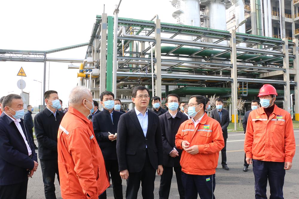在雙酚A項目、己內(nèi)酰胺·尼龍6項目建設(shè)現(xiàn)場,孫書記聽取了項目建設(shè)進(jìn)度、工藝技術(shù)、產(chǎn)品市場情況,以及企業(yè)“十四五”規(guī)劃和北部園區(qū)建設(shè)規(guī)劃等情況介紹,重點了解了雙酚A項目具備的延鏈、強(qiáng)鏈、補(bǔ)鏈以及打造全產(chǎn)業(yè)鏈的特色后,孫書記指出:魯西集團(tuán)要把握機(jī)遇,在保證項目安全和質(zhì)量的前提下,做好規(guī)劃設(shè)計,加快推進(jìn)項目建設(shè)工期,確保順利投產(chǎn)達(dá)效;北部園區(qū)建設(shè)要篩選引進(jìn)行業(yè)領(lǐng)先、低能耗、高附加值、高技術(shù)含量、適合園區(qū)發(fā)展的高精深產(chǎn)品項目,持續(xù)提高企業(yè)的盈利能力和綜合競爭力,爭取十四五期間為全市經(jīng)濟(jì)發(fā)展作出更大的貢獻(xiàn)。